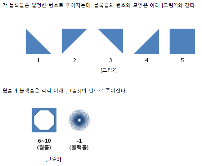 해당 칸의 숫자가 1~4인 경우는 삼각형의 블록을 만난 경우이다.