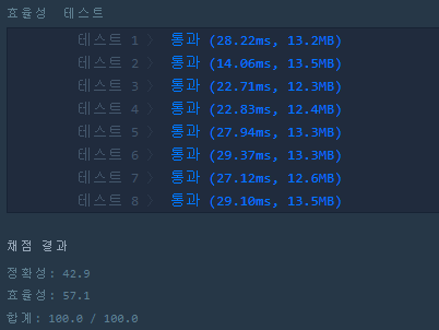 이 문제는 효율성 테스트가 있는 문제여서 시간 복잡도를 고려하여 문제를 풀어야했다.