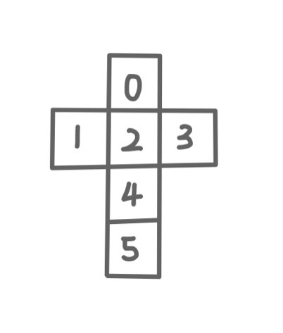 우선, 아래의 전개도에 적혀 있는 숫자가 벡터의 인덱스를 의미하고,